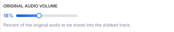 Original Audio Volume - This parameter determines the mix ratio of the original audio source relative to the dubbed audio track in the final output.