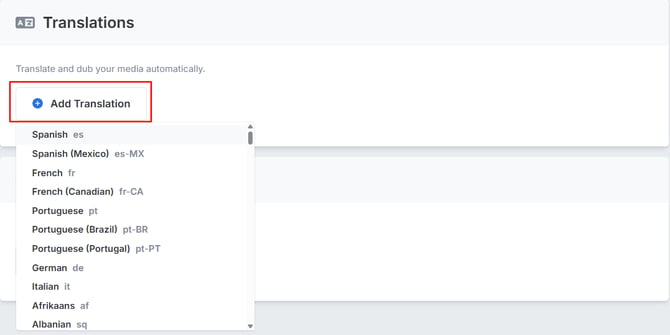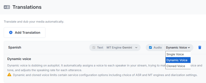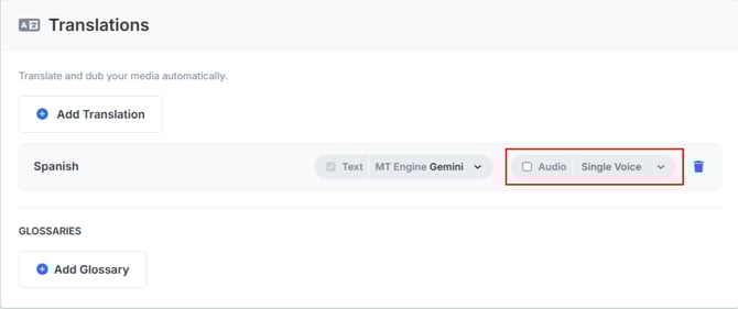 After your Translation(s) have been added, you will see the option of audio dub(s) available.