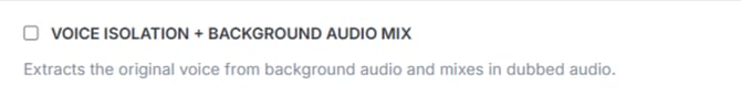 Voice Isolation + Background Audio Mix - When enabled we will extract the original voice from background audio and overlay the dubbed audio on the background instead.