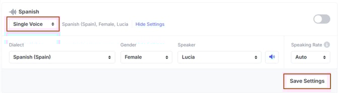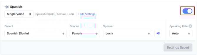 - Dialect - Select the dialect you would like your Audio Dubs to use (some languages will have more than one dialect available).