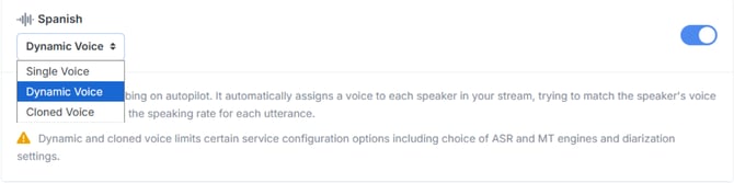 For both Dynamic Voice and Cloned Voice, the following settings are required: