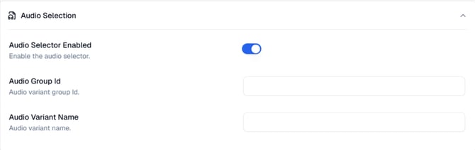 Audio Selector Enabled: Toggle this option ON to enable audio variant selection. When disabled, the Service will automatically use the default audio from your input stream.