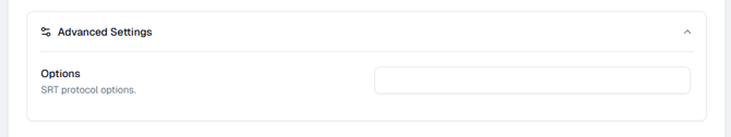 To access the Advanced Settings, click the Advanced Settings dropdown on the page. This section provides additional configuration options for fine-tuning your SRT input stream.