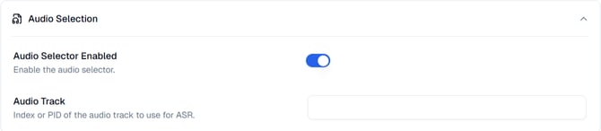 Audio Selection: This allows you to specify which audio track to use for Automatic Speech Recognition (ASR). Click to open the section.