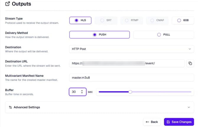 Please see Step 5: Output (HLS) - How do I configure HLS Output for my Service using the new UI? for more information.