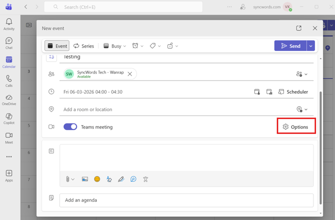 - Create or open your Teams meeting invitation