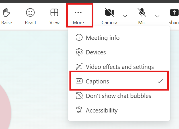 - Check that captions are enabled in your Teams meeting controls
