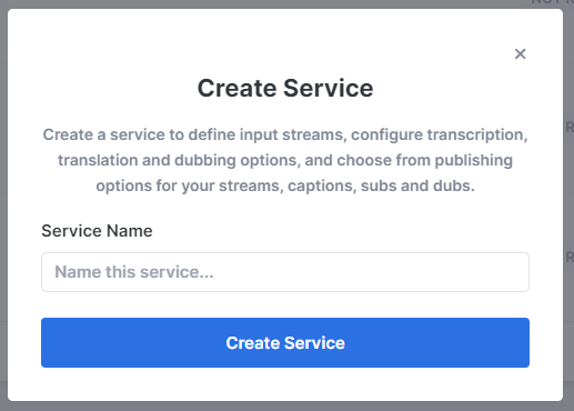 To Create a Service, log in to your SyncWords account, go to Services and click "Create Service".