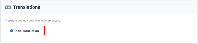 If you want to include alternate language subtitles to your live stream along with the source language captions you can do so using the Translations section. Click the "Add Translation" button and select the language you want to add from the dropdown.