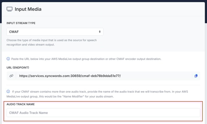 Paste this value into your SyncWords Service in the Audio Track Name field.