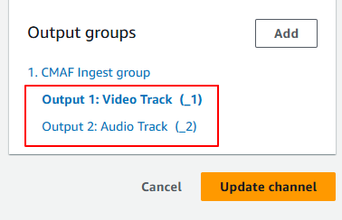 - Ensure you set up separate Audio and Video Tracks. This is required as MediaPackage and SyncWords need distinct audio and video tracks for captions to function correctly.