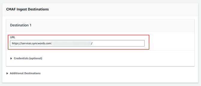 - Paste the URL (Endpoint) copied in Step 2 into the CMAF Ingest Destination