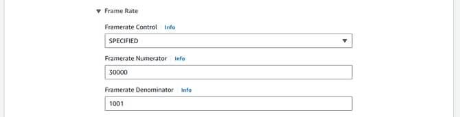 Frame Rate: Although the frame rate of the source material can be anything the output must be set to 29.97 fps for captions to work properly in MediaPackage.